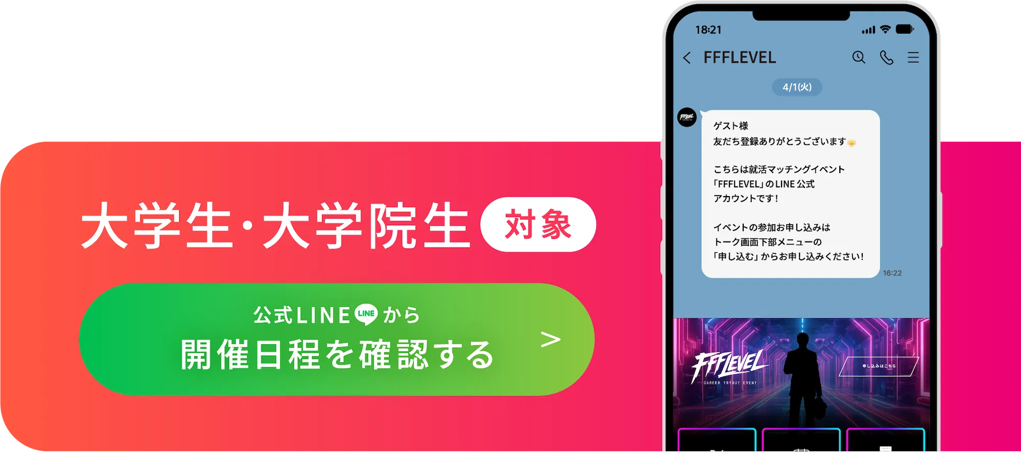 本イベントは「内定直結型」の企業マッチングイベントです。企業からの特別スカウトを獲得すると、通常よりも有利かつスピーディーに選考を進めることができます。参加するだけで就活が動き出す大きな一歩に。未来の選択肢を広げる絶好の機会です。